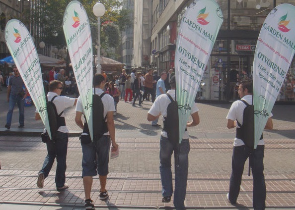 Hareketli sırtta tașınan reklam bayraklarıdır. Gündüz ya da gece șehirde, plajda ya da mesire yerlerinde hedef kitlenizin bulunduğu her yere gidebilir. Kampanyanıza özel tasarlanır. Dile-nir ise bir personel iki bayrak birden tașıyabilmektedir.